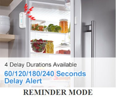 Choose between 1, 2, 3, or 4-minute delay before the alarm sounds — ideal for everything from refrigerator doors to office entrances.